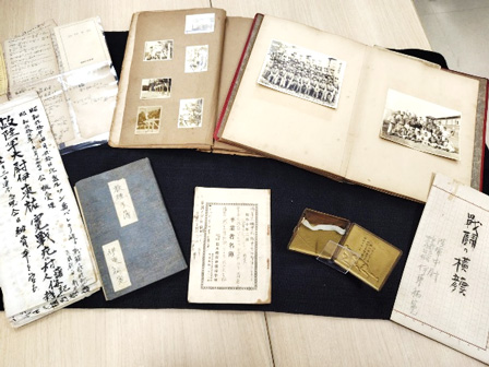9月17日には、上記報道をご覧になった戦没同窓生・伊藤祐寛氏(1935年卒)のご家族より、体操学校時代のお写真やラグビー部より贈られた卒業記念品、卒業生名簿、戦争経験が綴られた直筆の原稿等をご提供いただきました(写真)。